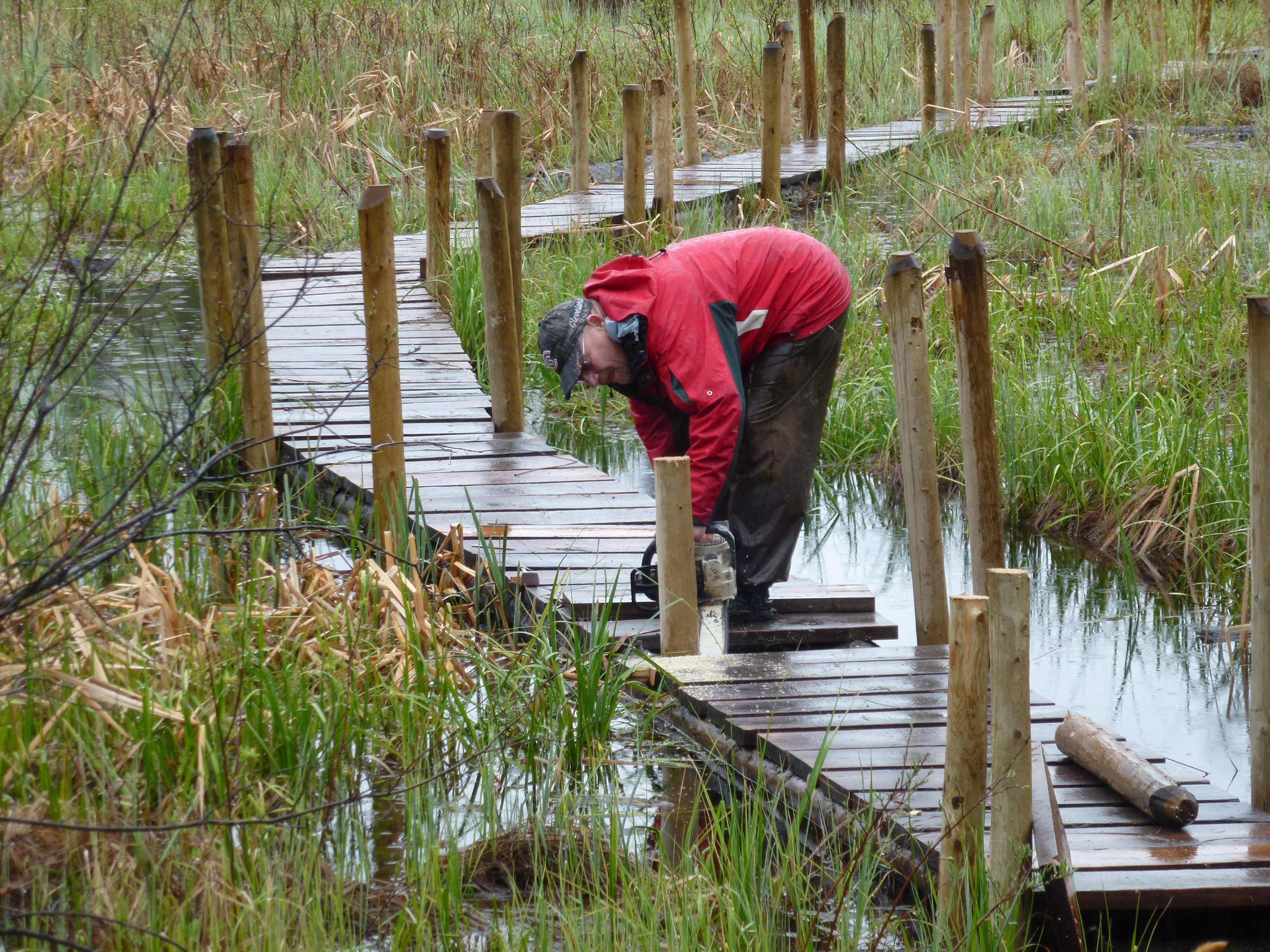 So a few relaxing days of fishing and doing odds and ends turned into a full assault on raising the level of the boardwalk! Two full days of blood sweat and tears, 56 pounded posts and extremely sore shoulders = dry feet for the future. Hooray!!!!