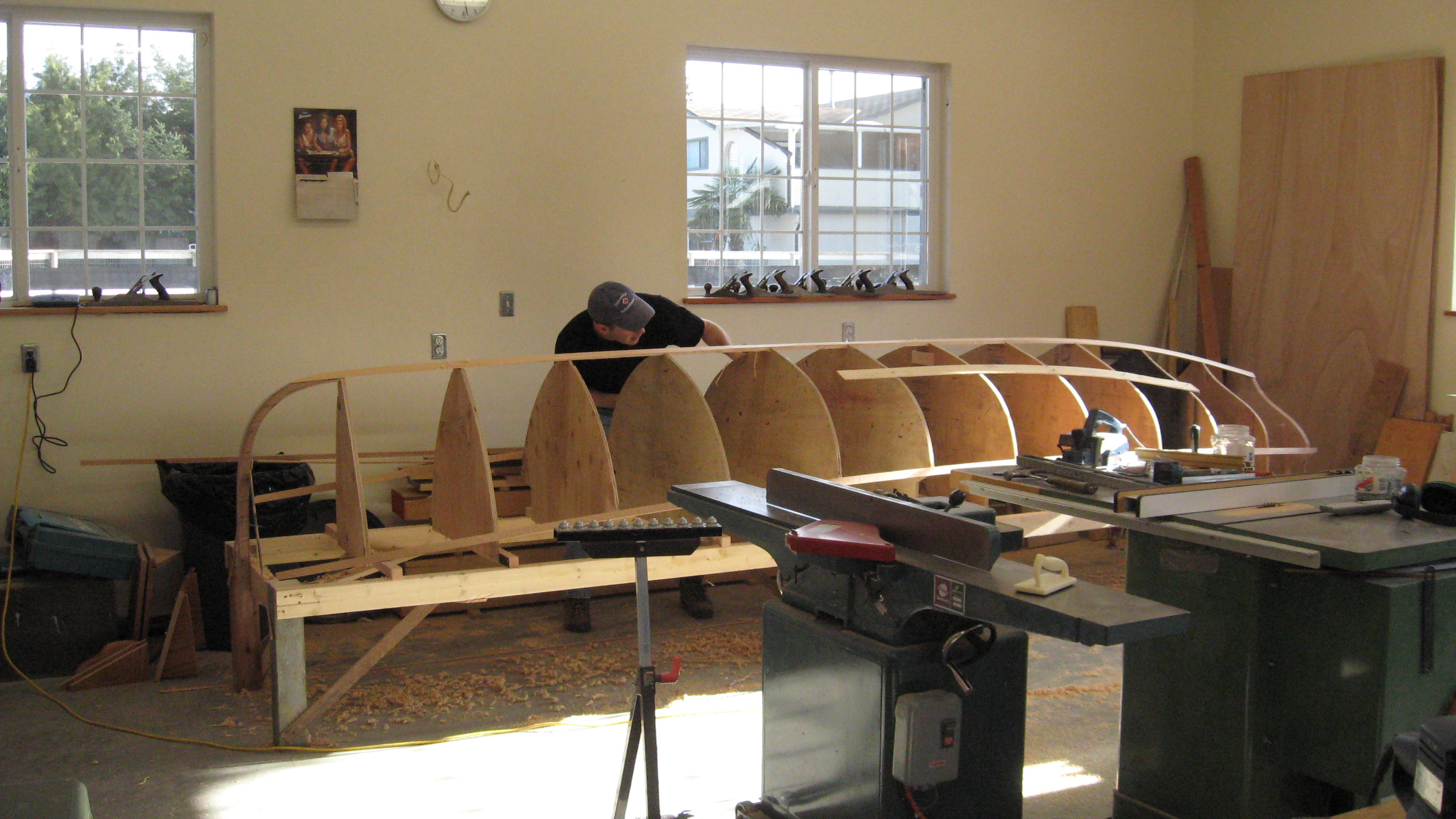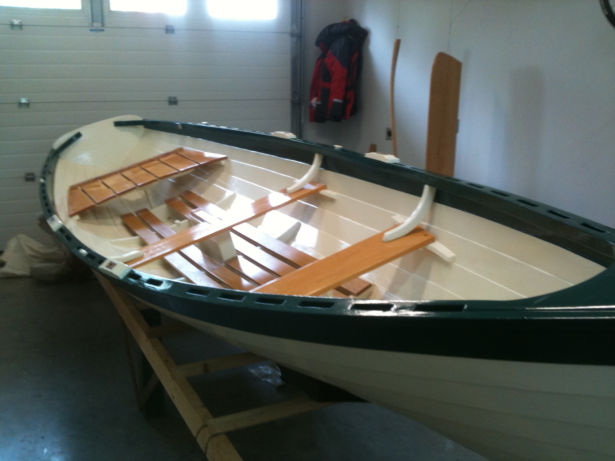 SPITFIRE is an Acorn 15, row/sail boat which I built from scratch with my friend and boat building mentor, Murray S. The Acorn 15 is an Iain Oughtred design from England and is a lapstrake plywood design.