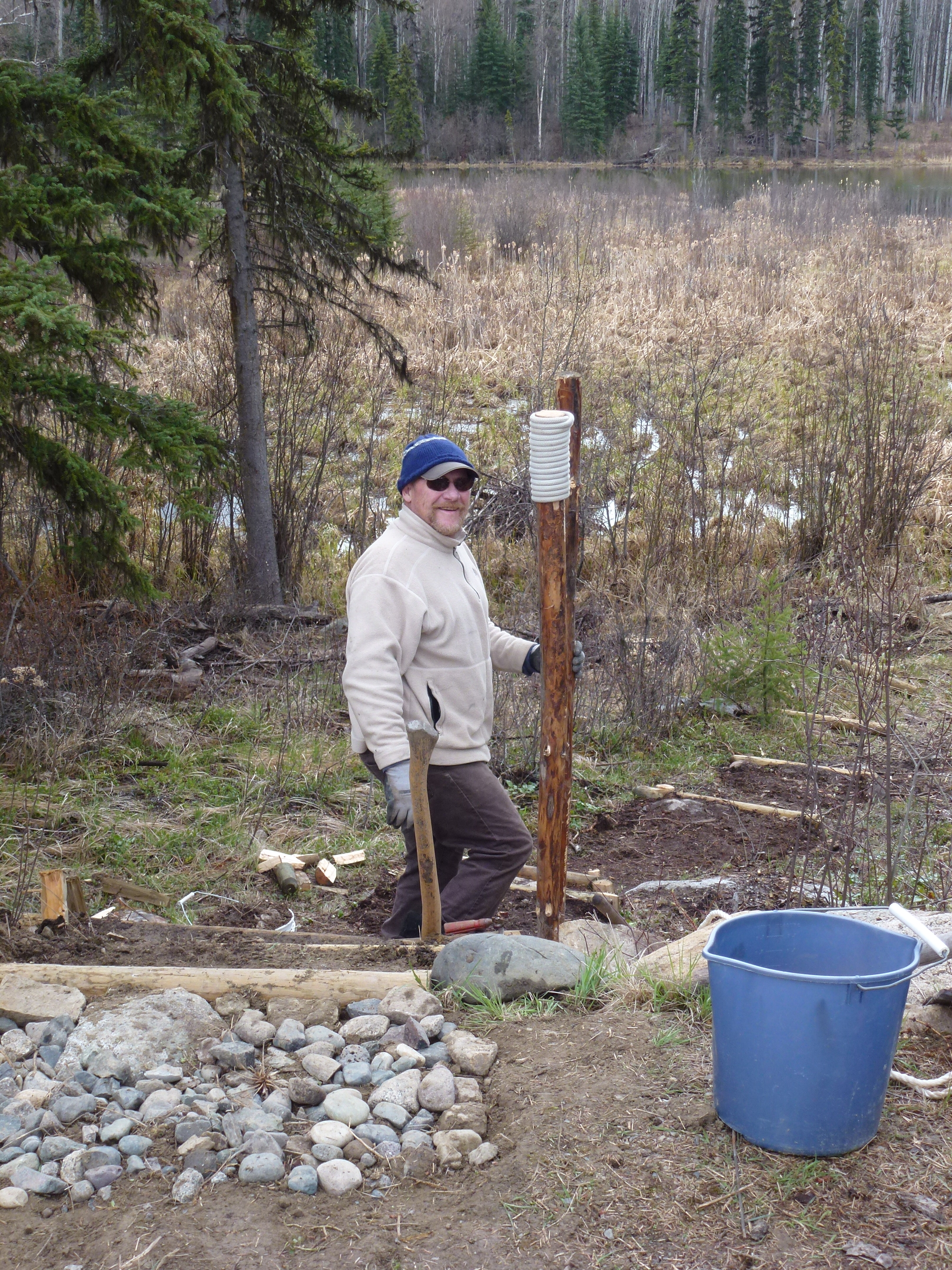 Below you see the rock wall which sits on the lakeside of the building site for the WSR homestead: